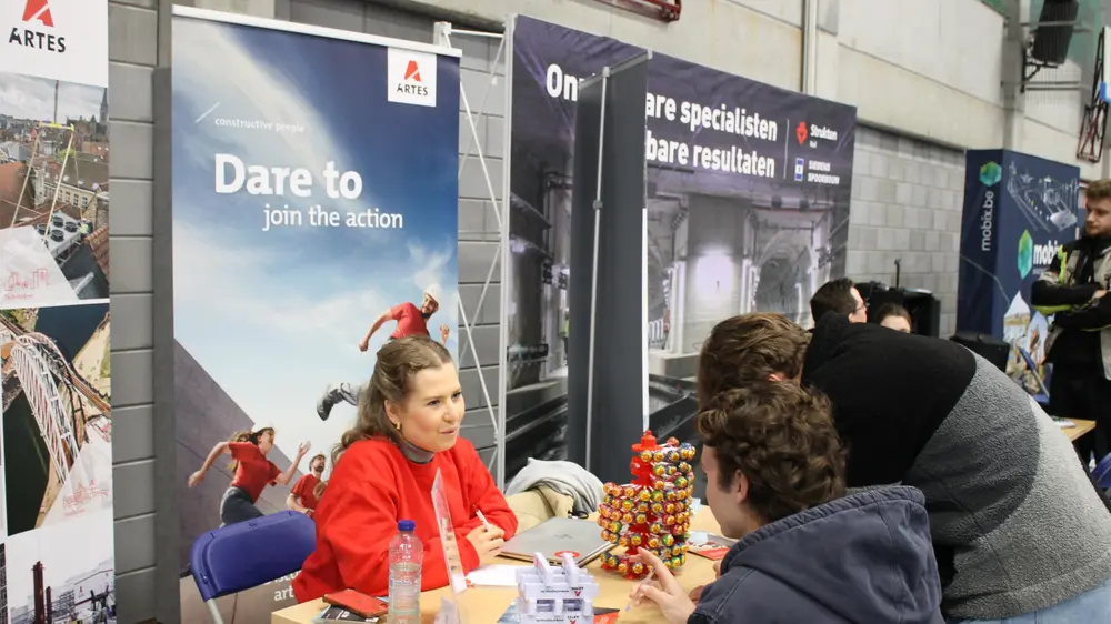Op de campus van Odisee in Aalst vond onlangs een jobhappening plaats voor de bacheloropleiding Bouw en het graduaat Werforganisatie. Tijdens het event gingen studenten rechtstreeks in gesprek met maar liefst 50 bedrijven uit de bouwsector.